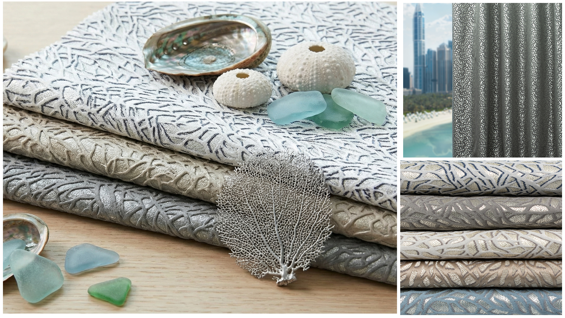 Reef is a modern, versatile, 3D effect fabric that is available in 5 colour options (please click on a thumbnail image to view)